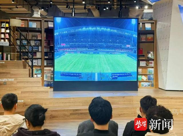 盐城经开区新时代文明实践中心(中韩文化客厅)打造温馨惬意观赛环境,一楼图书区设置专属观赛大屏同步转播赛事。不少市民携家人好友前来观赛,一边欣赏精彩球赛,一边品尝甜品咖啡,轻松氛围里为家乡球队加油鼓劲。