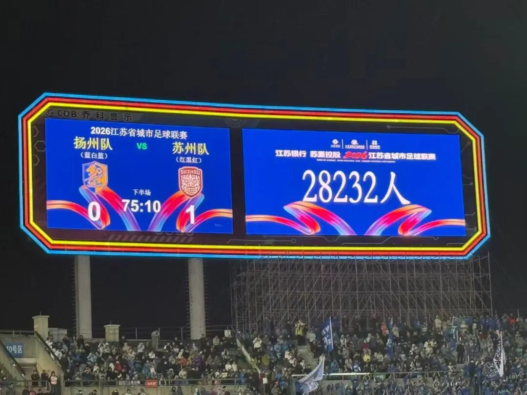 本赛季苏超首轮四场比赛,各主场均展现出现象级观赛人气。常州队对阵南通队的比赛吸引40832名观众到场,人数逼近场馆满座上限;扬州队与苏州队的对决现场观众达28232人,主场助威声势高涨;连云港队对阵盐城队、无锡队迎战镇江队,现场观众分别达到31133人、24067人。四场比赛累计入场观众超12.4万人,整体上座率达100%,座无虚席的赛场、响彻全场的助威,是广大球迷用热爱做出的选择,既彰显江苏各地球迷对本土足球赛事的全力支持,也印证苏超经过持续深耕,早已扎根群众、融入城市体育生活,积攒下扎实的球迷基础与浓郁的本土足球氛围。