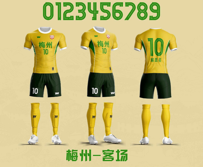 客场球员球衣主体采用金柚黄,呼应了梅州“中国金柚之乡”的美誉,以及金柚“饱满丰硕、向阳而生”的特质。暗纹满印梅州山水与客家围屋,围龙屋是客家人的精神家园,层叠山峦是梅州的地理名片,将这些元素以低调的暗纹融入球衣,让每一位球员都能穿着印有家乡风景的战袍,在客场赛场为梅州而战,彰显“脚下有根,眼中有光”的客家精神。