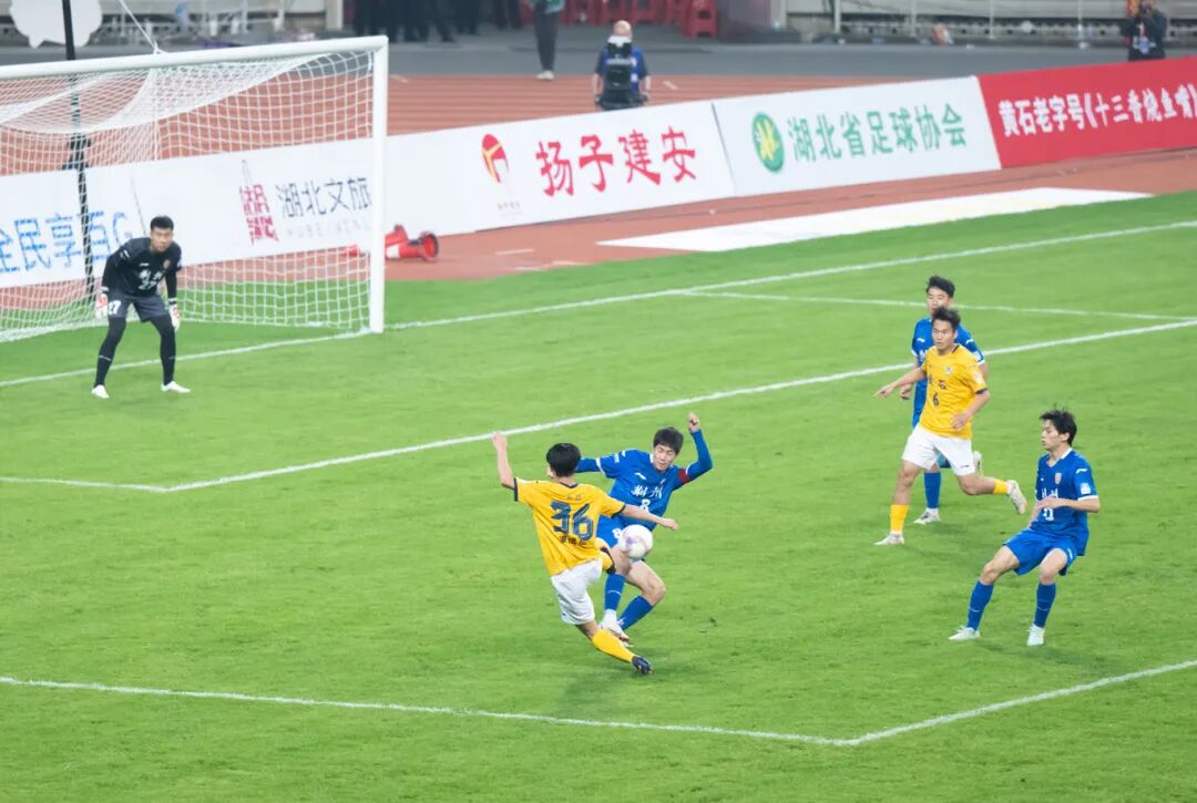 开幕式后,揭幕战由东道主黄石队对阵荆州恒隆队。两队球员攻防转换迅速,每次射门和抢断都牵动人心。经过激烈比拼,最终两队1比1战平。
