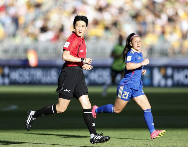 2026年3月1日,主裁判董方雨(左)在比赛中执裁。 当地时间3月1日,在澳大利亚珀斯体育场举行的2026年女足亚洲杯揭幕战中,东道主澳大利亚队1比0战胜菲律宾队。以董方雨为主裁判的中国裁判组执裁该场比赛。 新华社记者 马平 摄