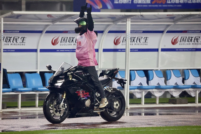 无锡赛区则让摩托铁骑的引擎轰鸣与绿茵激情相碰撞。开赛前,当下红遍全网的张雪机车空降现场,伴随着无锡队战歌《赛场荣耀》,车手们驾驶WSBK夺冠的同款战车进行绕场表演。苏超与张雪机车的联袂亮相,很显然,无锡赛区是懂流量的。