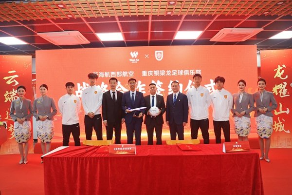 4月14日,新海航西部航空与重庆铜梁龙足球俱乐部在西部航空生产基地签署战略合作协议。双方将携手开启“航空+体育”跨界联动新篇章,依托西部航空覆盖国内外60余座城市的航线网络与出行保障优势,结合铜梁龙足球俱乐部的体育IP影响力,双方将在球队客场出行保障、品牌联合推广等领域深化合作,挖掘重庆本土航空与体育融合的文化价值。